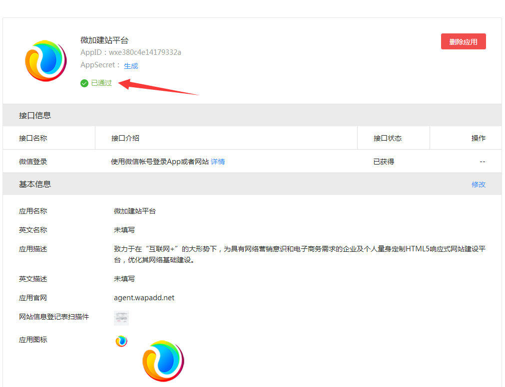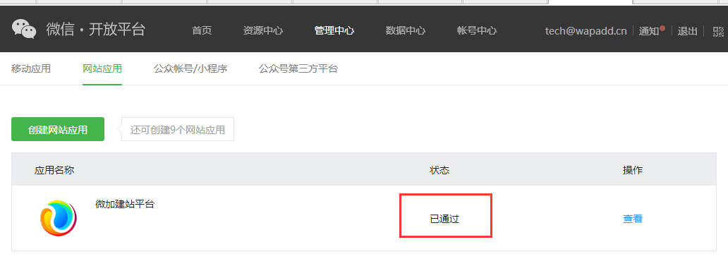 微信开放平台—管理中心—网站应用