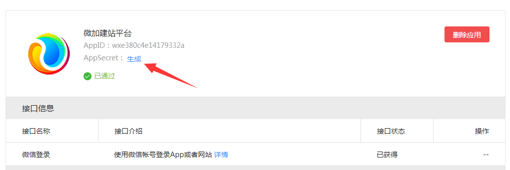 点击生成AppSecret 然后复制出AppSecret保存