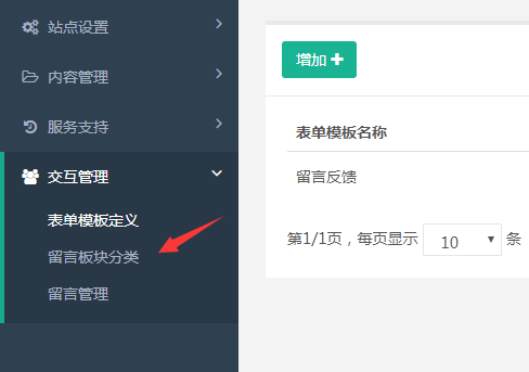 当我们这设置好表单模板后,要到要到留言板块分类给他进行分类,