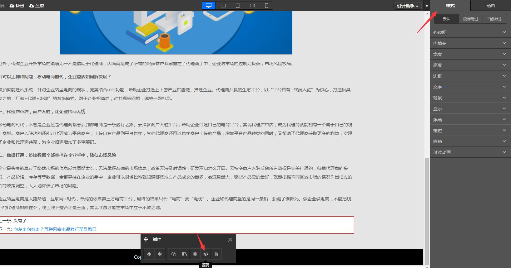 可以点击当前插件的源码按钮进行插件样式的修改,也可以在右侧的样式表直接修改样式。