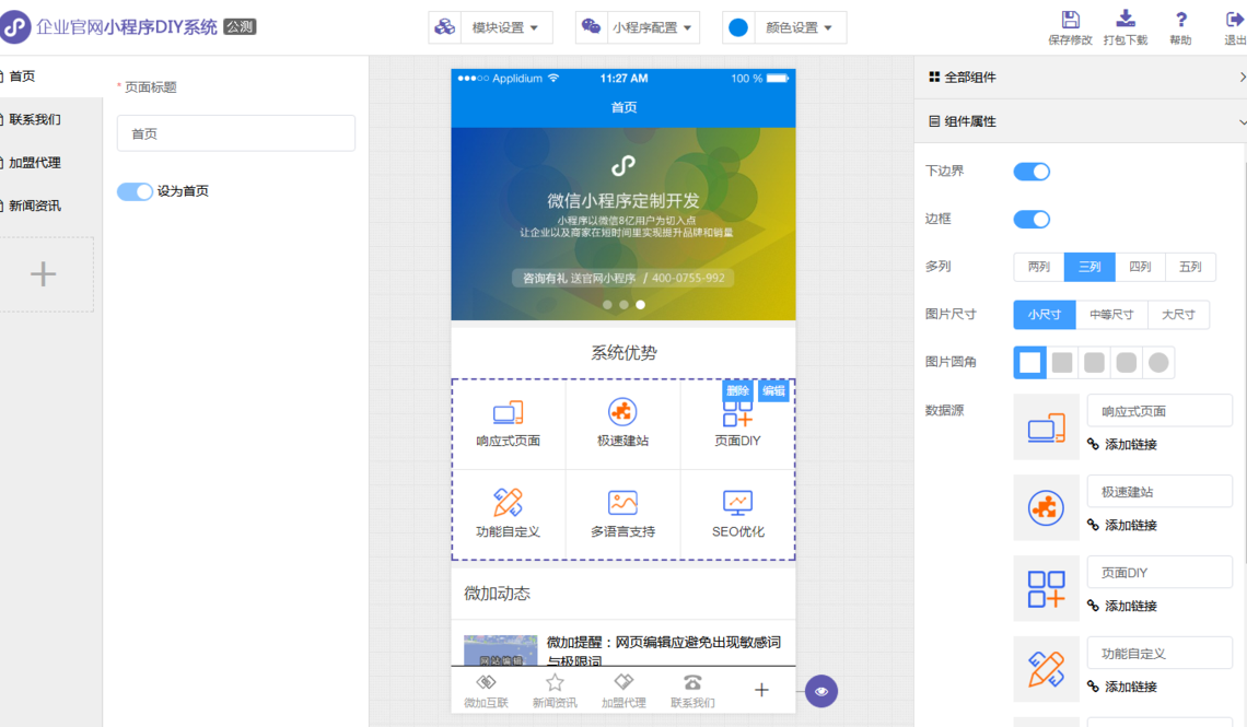 微加建站系统持续更新更多最前沿的功能模块和最前卫的效果插件